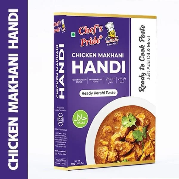 Chefpride Makhni Handi Paste is a rich, buttery, and creamy ready-to-cook blend that brings the authentic taste of restaurant-style makhni handi to your home. Made with tomatoes, cream, butter, and a special mix of aromatic spices, this paste creates a smooth, flavorful gravy in minutes. Just add chicken, cook, and serve—no need to chop, blend, or measure spices. Perfect for quick dinners, special occasions, or weekend meals, Chefpride Makhni Handi Paste offers convenience without compromising on traditional taste.